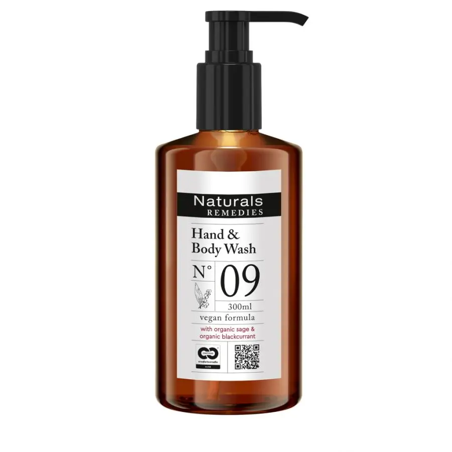 Lassen Sie sich durch die mild reinigende Seife für Hände und Körper verwöhnen. Sie spendet der Haut Feuchtigkeit und reinigt im Handumdrehen. Naturals REMEDIES bietet eine Auswahl bewährter Apotheker-Formulierungen mit einem revitalisierenden Duft und Extrakten aus Salbei, Schwarzer Johannisbeere und Brennnessel aus kontrolliert biologischem Anbau. Trendiges, minimalistisches Design mit eingefärbten Flakons, um die wertvollen Ingredienzien vor UV-Strahlen zu schützen und die Qualität zu erhalten. Das Design unterstützt dezent das Ambiente in Ihrem Hotelbad.Die Kollektion bietet ein umfangreiches Sortiment für ein Wohlfühlprogramm von Pflegeprodukten bis hin zu Accessoires. Das zeichnet unsere Pflegeprodukte aus: milde Formulierungen mit angenehmen Texturen mit pflanzlichen Inhaltsstoffen und Extrakten aus kontrolliert biologischem Anbau, Verpackungen recycelbar, 93-95 % der Inhaltsstoffe sind natürlichen Ursprungs, Formulierungen mit milden Konservierungsstoffen, geignet für Veganer, ohne Farbstoffe, frei von Parabenen und Silikonen.
